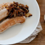 I normally avoid extra cooking steps. But poaching sausages before browning gives a much better texture. More juicy and melt-in-the mouth that I make an exception. The other bonus is you can poach in advance and then it only takes a few minutes to brown your bangers when you’re ready to serve.