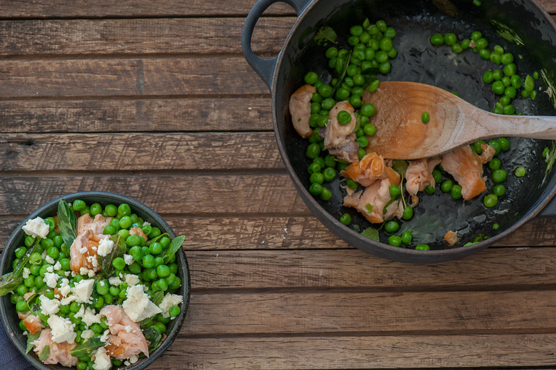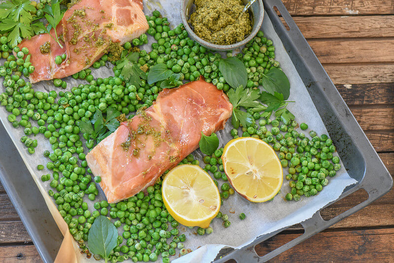 Salmon, Pea & Prosciutto Oven Supper