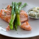 Salmon with Asparagus (or Green Beans) and Dill Mayo
